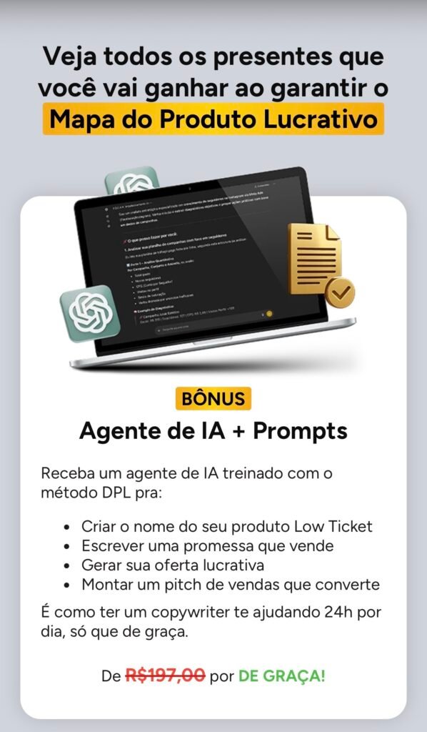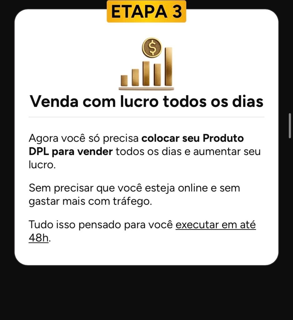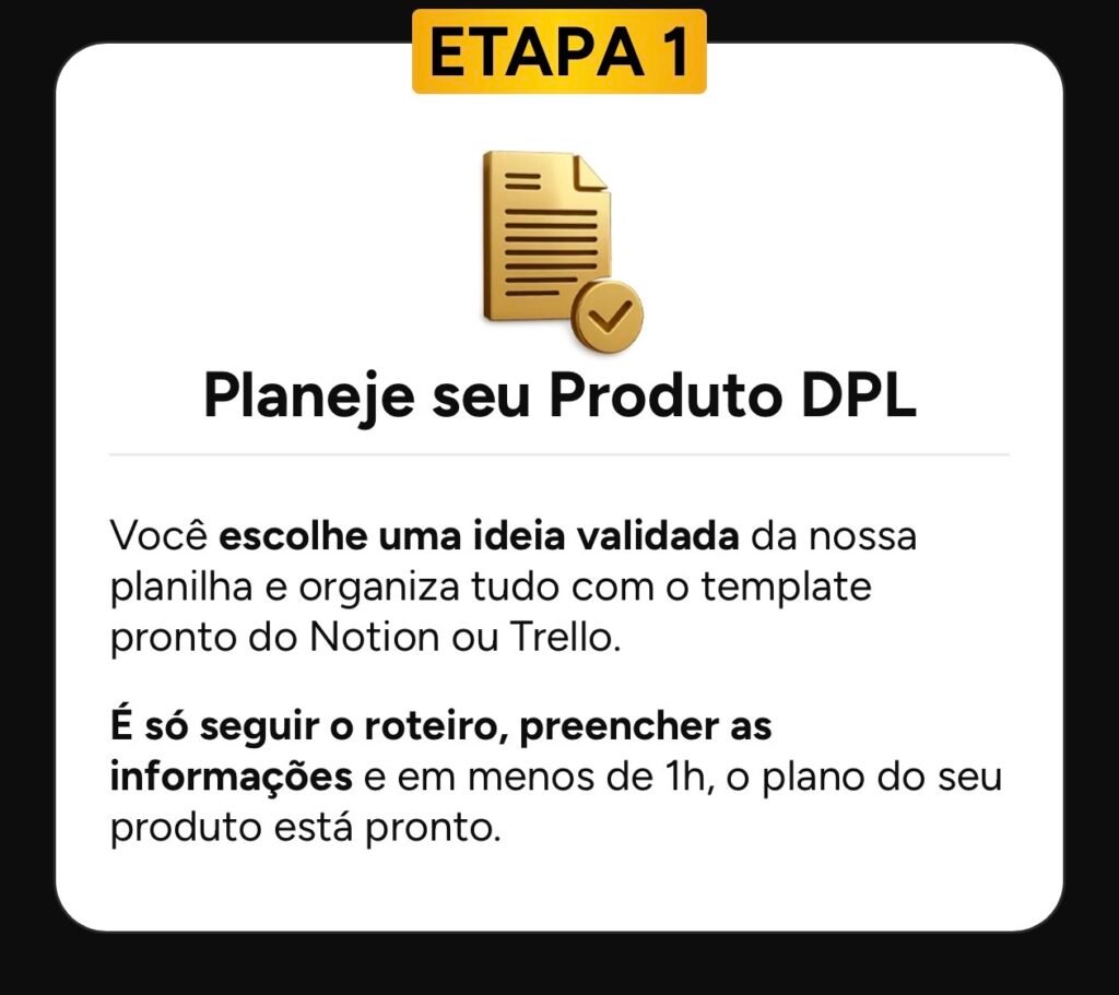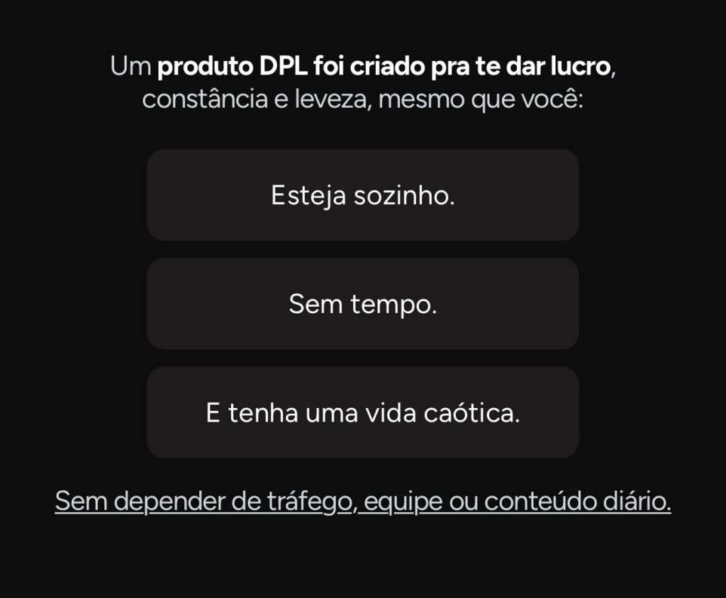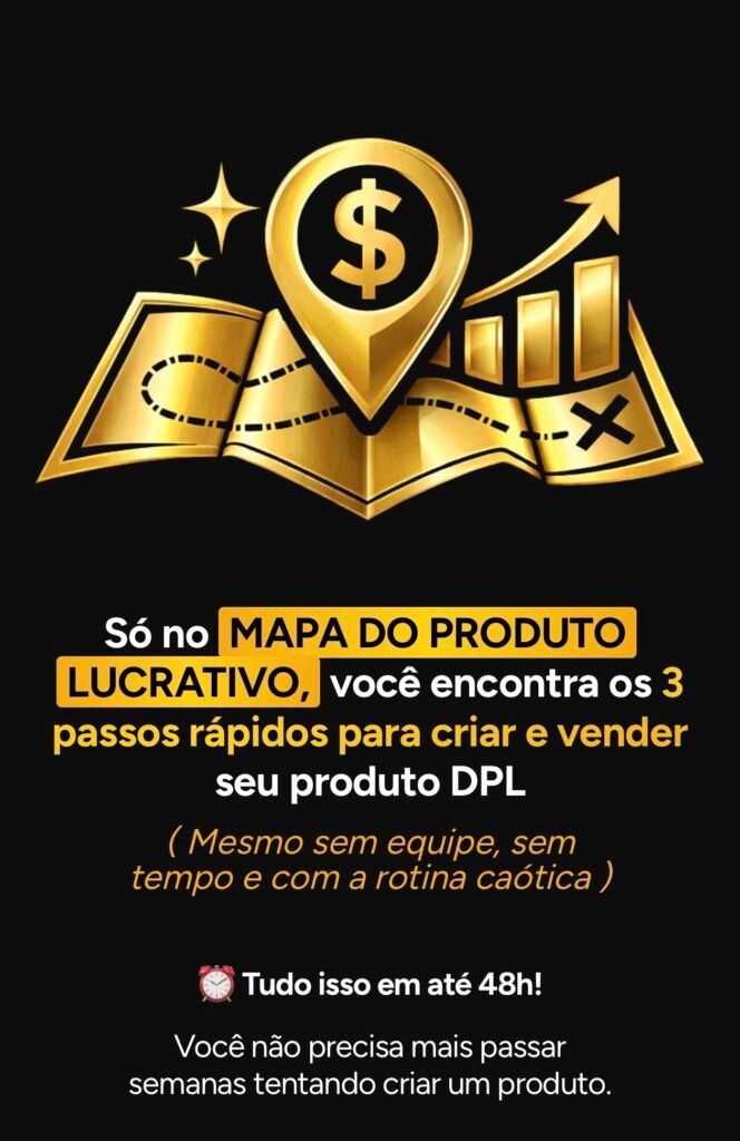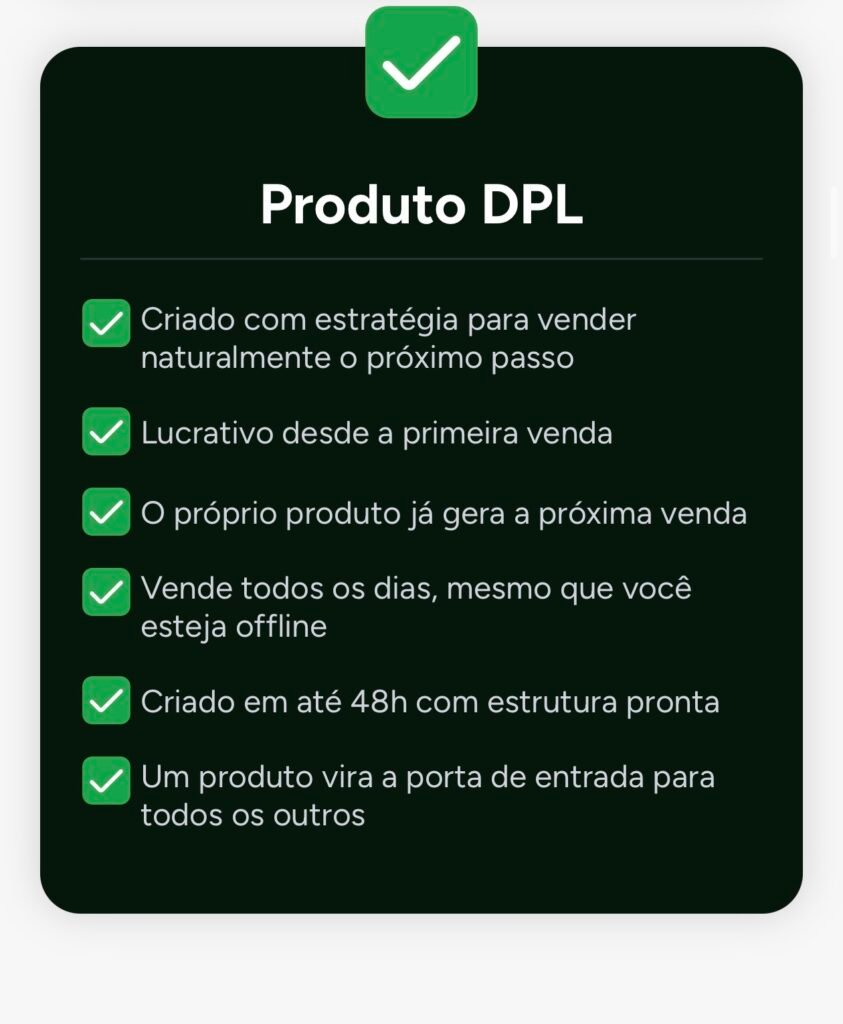 É um passo a passo direto ao ponto pra você criar um Produto DPL que vende todos os dias, sem precisar de equipe, tempo ou criar conteúdo.
