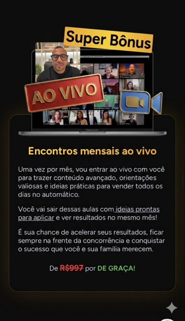 Sim! Você vai aprender a vender todos os dias, com mais segurança, sem depender de lançamentos ou grandes estruturas.